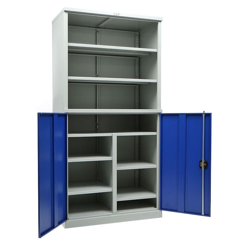 cерый полуматовый (RAL 7038), двери синие (RAL 5002)